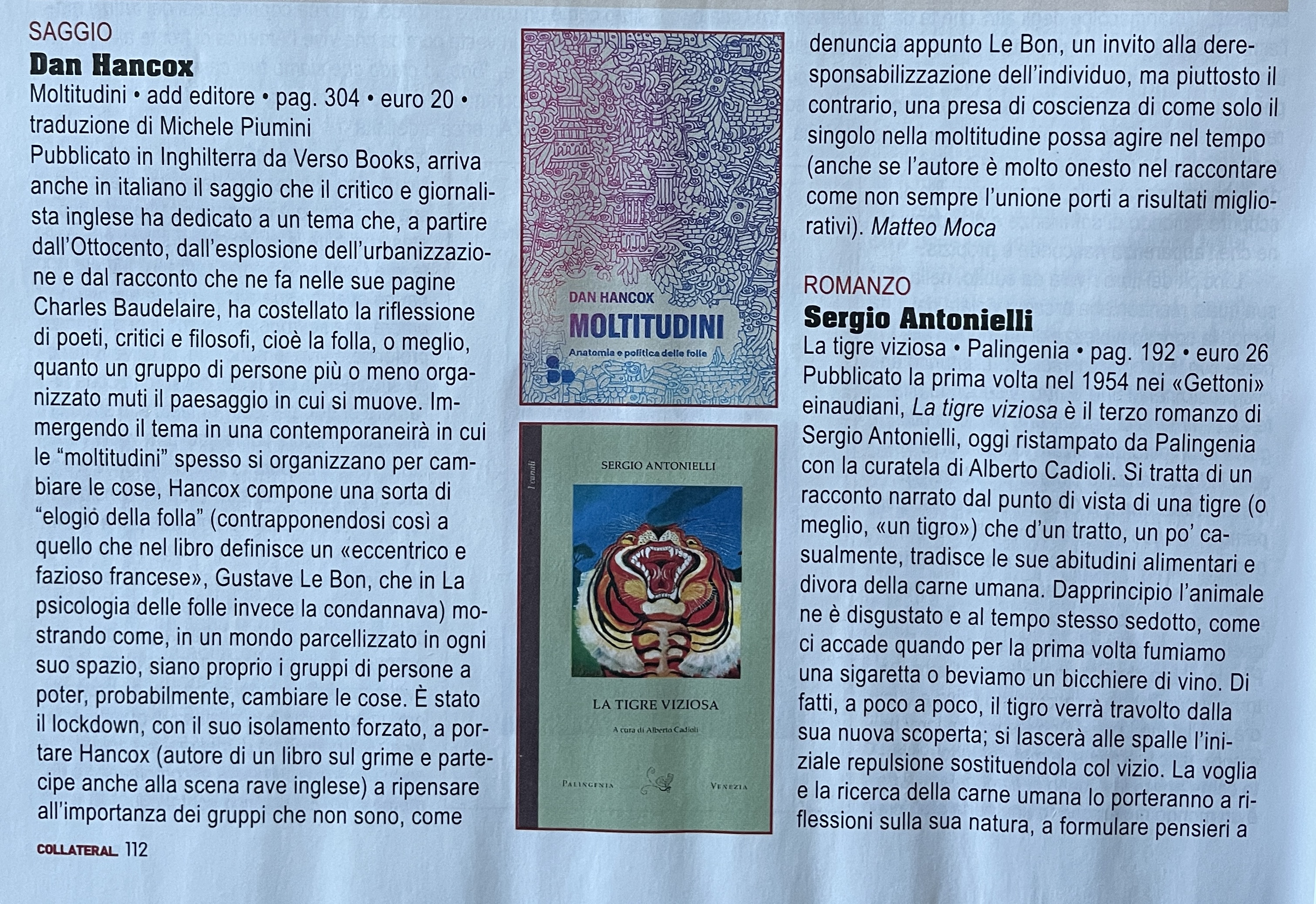 Moltitudini è un’indagine affascinante del ruolo della collettività nella formazione della società moderna. Hancox esplora il potere trasformativo delle masse, viste come ideale democratico, raccontandoci come abbiano influenzato eventi politici, culturali e sociali e come siano state a loro volta plasmate da governi, media e spazi urbani. Contrapponendo la sua visione a quella di Gustave Le Bon, che vedeva le folle come entità distruttive da controllare, Hancox evidenzia il potenziale dell’aggregazione umana, spaziando dalle rivoluzioni di Parigi fino ai festival musicali, alle folle calcistiche e al carnevale di Notting Hill. Analizzando la moderna e crescente tendenza a limitare gli spazi pubblici e il diritto di riunione, mentre governi e aziende cercano di controllare o privatizzare le aggregazioni spontanee, Moltitudini è un antidoto all’isolamento promosso dal consumismo moderno e dalla tecnologia, e sottolinea l’importanza delle esperienze collettive nella costruzione di una società più equa. Ci invita a riconquistare le strade e le piazze come luoghi di espressione collettiva e di libertà.
